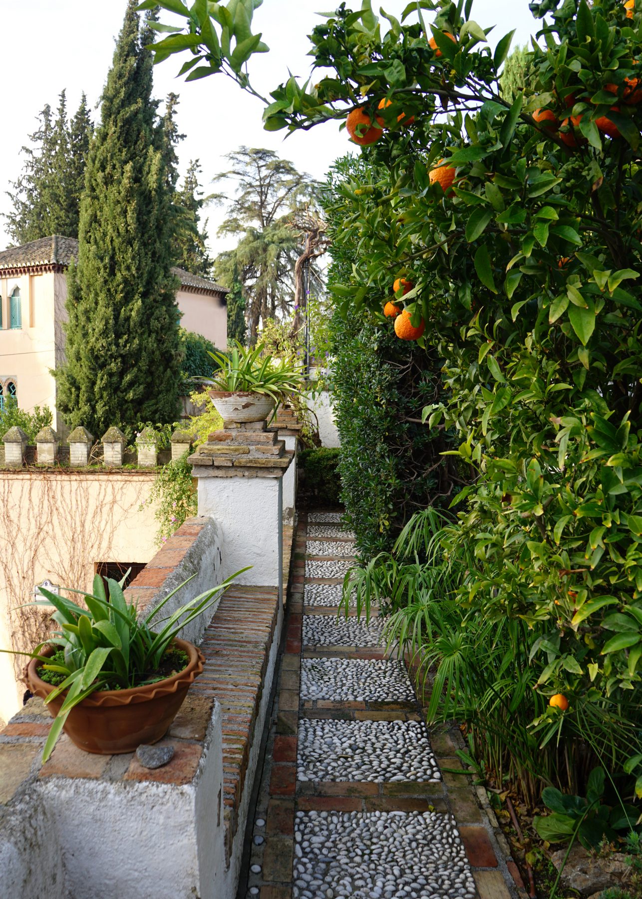 Las bellísimas vistas de los cármenes granadinos, sus trazas escalonadas, sus recovecos, sus especies tradicionales, su densidad de plantación, sus macetas, sus pilarillos, sus elementos patrimoniales, sus guiños regionalistas y el amor de sus propietarios por la historia y el paisaje cultural de la ciudad, componen un rico universo local propio que sólo se comprende cuando se vive un tiempo prolongado en Granada y cuando el estudio por el sitio se convierte en una afición. La reforma del carmen del Cuento tuvo como origen la desadaptación de los setos de boj ante el incremento progresivo y sostenido de los días de intenso calor de los últimos años. Consistió en rescatar los elementos esenciales del jardín, retirando lo que ya no aportaba y en ir, poco a poco, detalle a detalle, escena a escena, mejorando todos los pequeños espacios y rincones, y completando sus plantaciones.